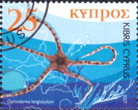 Hier zeige ich eine Marke aus Zypern (MiNr 1090) mit einem Braunen Schlangenstern (Ophioderma longicauda).
