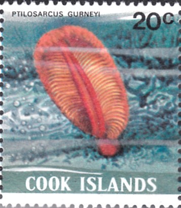 Auf den Cook-Inseln ist in einer Serie "Nesseltiere" diese Marke (MiNr 727) mit einer Orange Seefeder (Ptilosarcus gurneyi) erschienen.