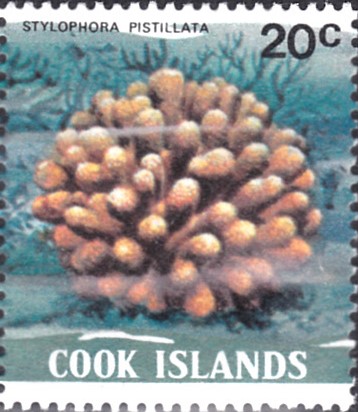 Auf einer Marke der Cook-Inseln (MiNr 728) wird eine Griffelkoralle (Stylophora pistillata) gezeigt.