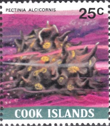 Auf einer Marke der Cook-Inseln (MiNr 734) ist eine Kamm-Koralle (Pectinia alcicornis) abgebildet.