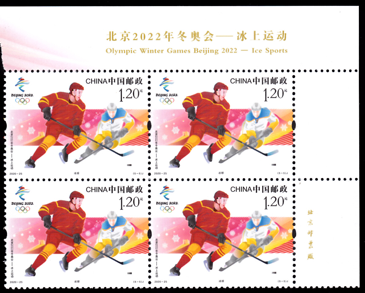 Auf der ersten Marke der Serie (MiNr 5249) ist ein Eisläufer beim Shorttrack abgebildet. Hier zeige ich einen Eckrandviererblock dieser Marke.