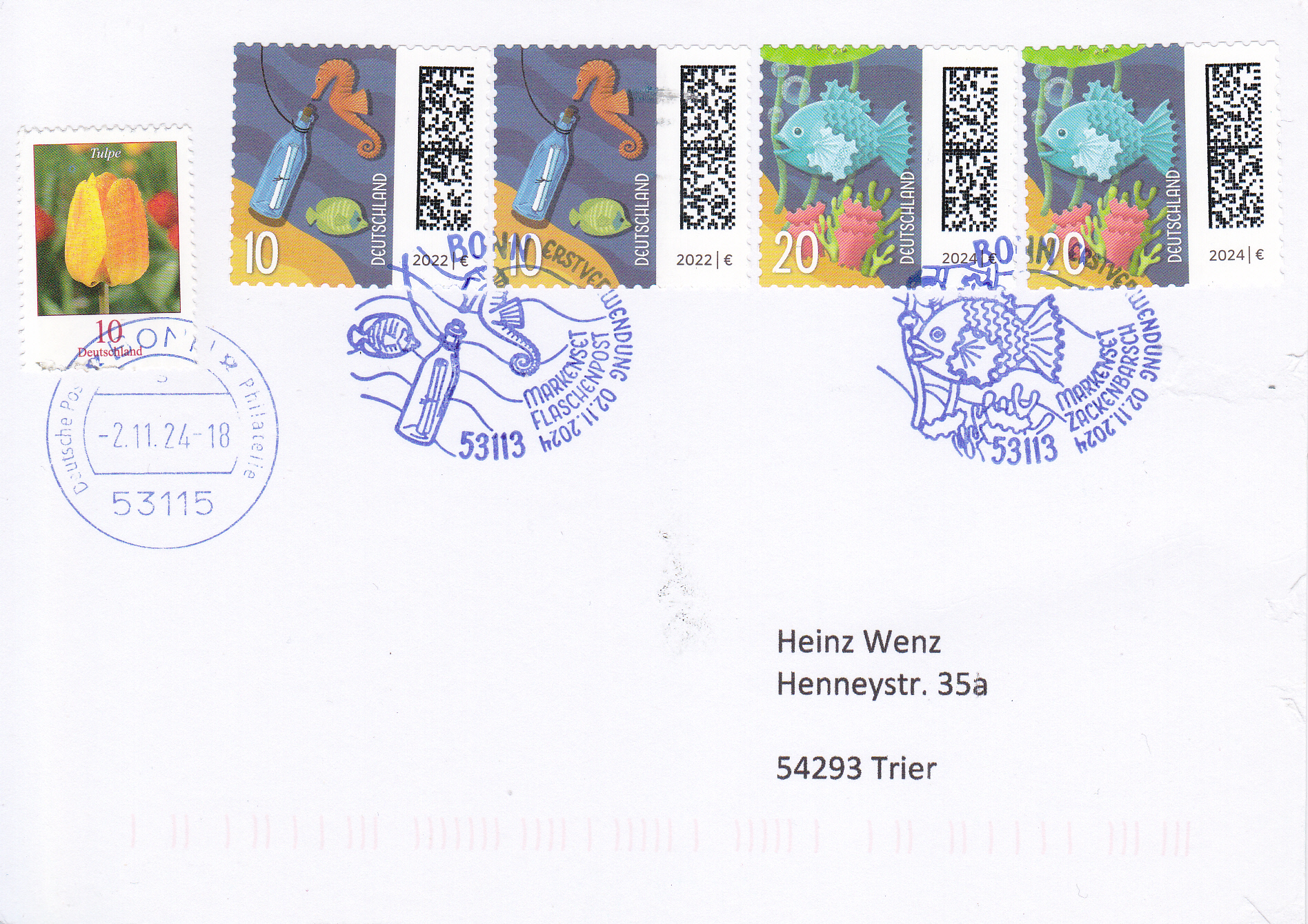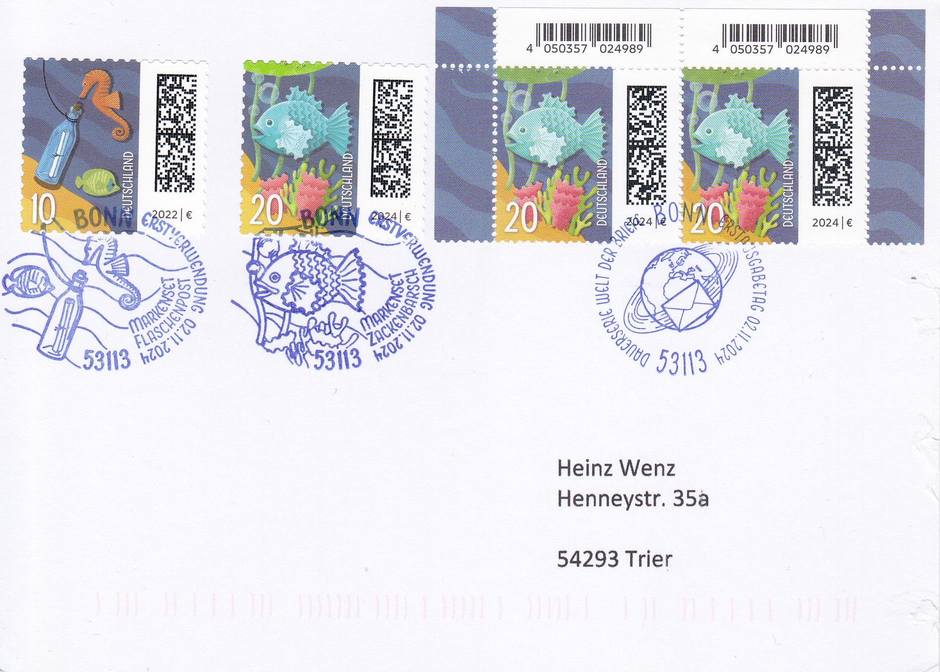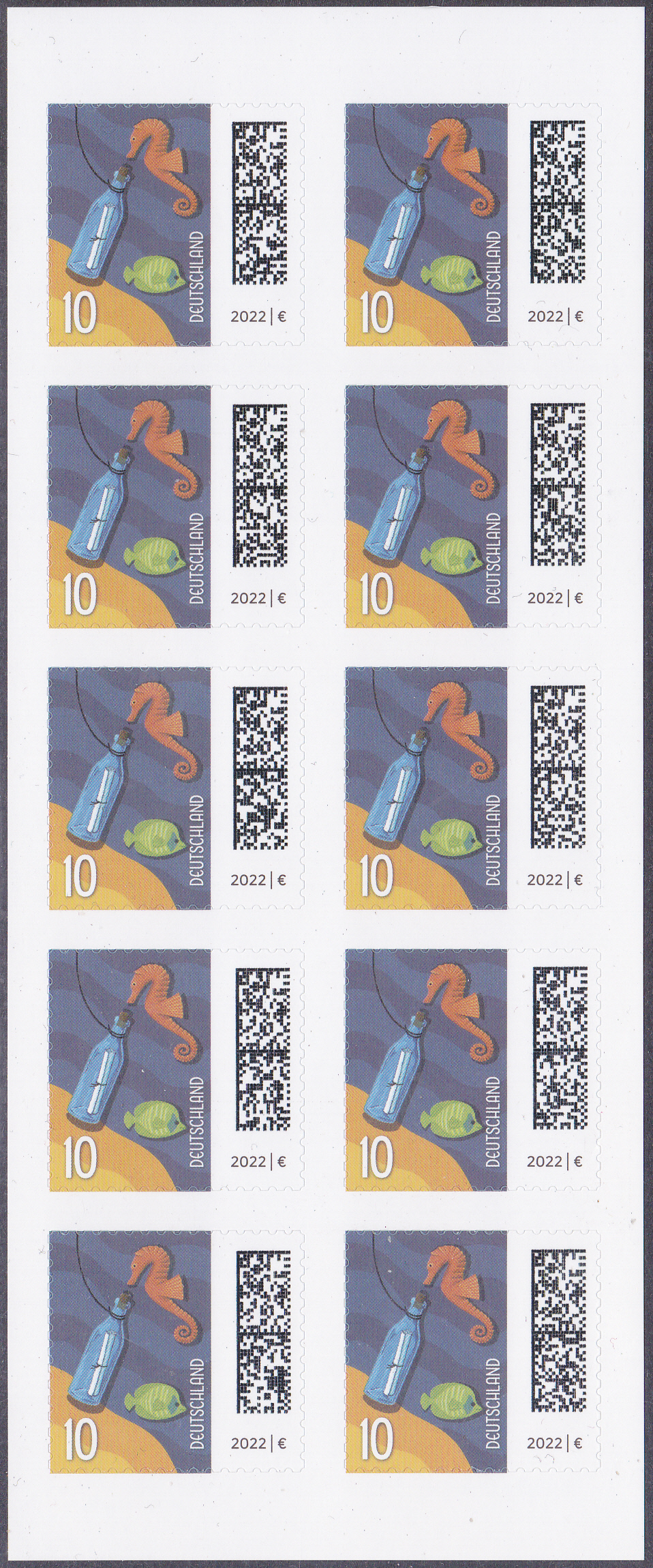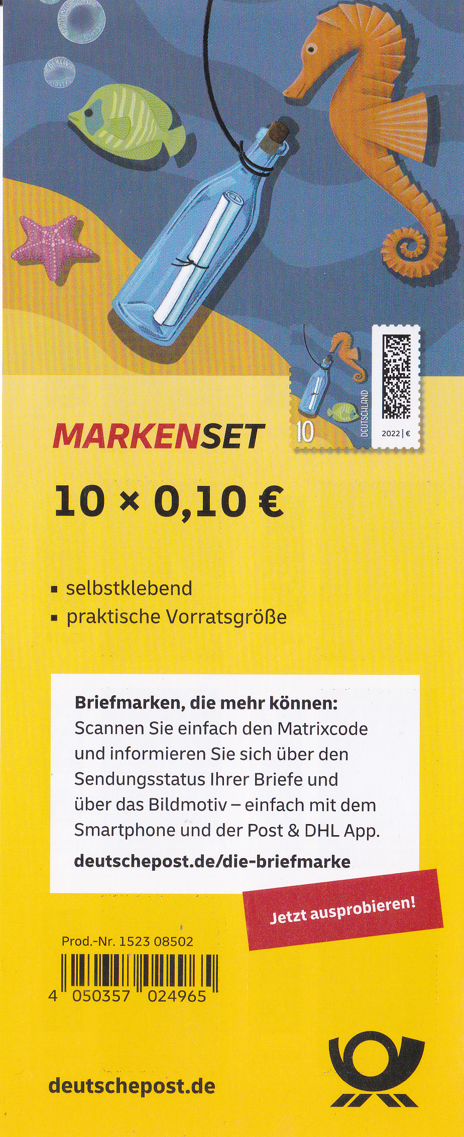 Am 2.11.2024 ist die Marke zu 10 Cent "Flaschenpost" auch als selbstklebende Marke in einem Folienblatt erschienen.