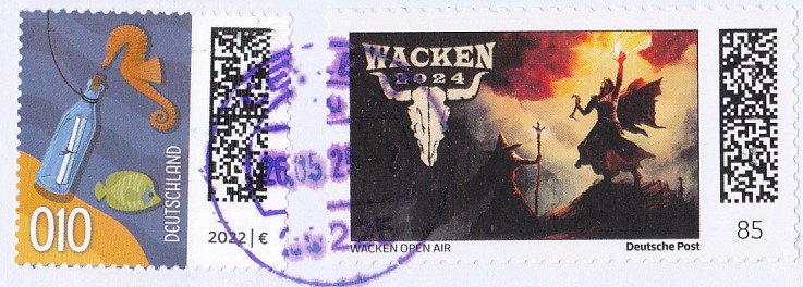 Auf diesem Umschlag von Celle nach Trier wurde eine Marke zu "010 Cent" aus der DS "Welt der Briefe" zusammen mot einer Marke zum Wacken Open Air 2024 zu 85 Cent mit dem Jahresmotiv 2024 "Witches & Warlocks" (ein Post-PWZ Eigenausgaben "Sondereditionen", siehe auch unter viewtopic.php?f=18&t=21276&p=84844&sid=16e0d4a343120a9f63a85c0f88390c3e#p84843) zur Frankatur verwendet.