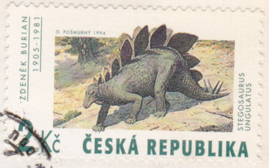 Auf einer Marke aus der Tschechischen Republik (MiNr 42) wird ein Apatosaurus excelsus nach einer Illustration von Zdeněk Burian (1905–1981; tschechischer Zeichner und Grafiker) gezeigt.