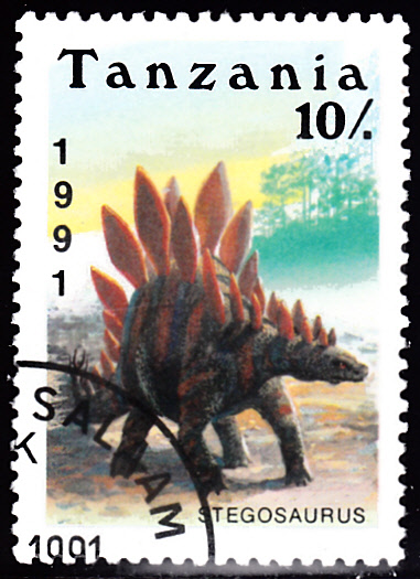 Einen weiteren Stegosaurus sehen wir auf dieser Marke aus Tansania (MiNr 854).
