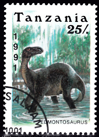 Hier kann ich eine Marke aus Tansania (MiNr 856) mit einem Edmontosaurus zeigen.