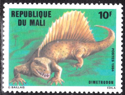 In Mali sind in einer Serie "Prähistorische Tiere" zwei bildgleiche Marken mit einem Dimetrodon erschienen.