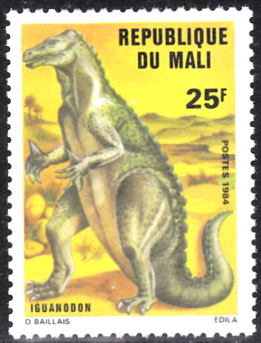 In Mali sind in der gleichen Serie zwei bildgleiche Marken mit einem hier schon beschriebenen Iguanodon erschienen.