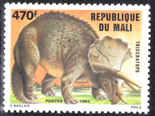 In der Serie aus Mali gibt es auch eine Marke (MiNr 1031) mit einem Triceratops.