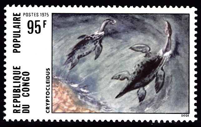 Zwei Plesiosaurier werden auf dieser Marke aus dem Kongo-Brazzaville (MiNr 494) gezeigt.