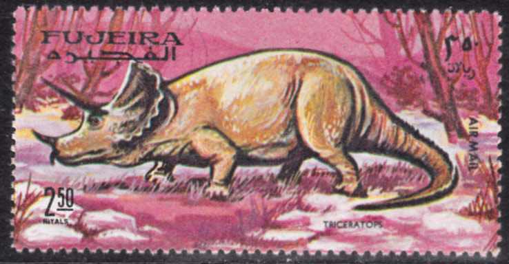 Die gleiche Serie hat auch zwei motivgleiche Marken mit einem Triceratops.