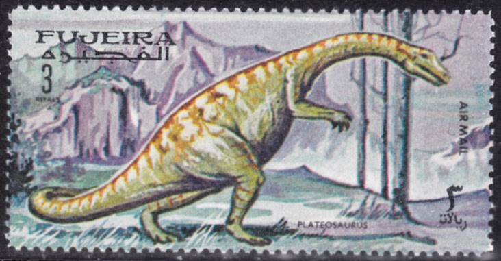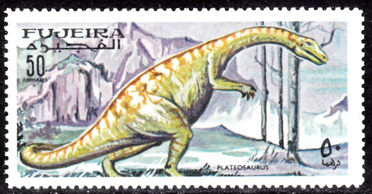 Es gibt in der Serie auch zwei bildgleiche Marken mit einem Plateosaurus.
