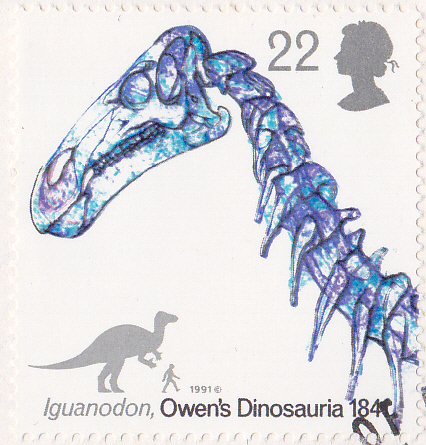 In einer Serie zum 150. Jahrestag des ersten Kongresses über Dinosaurier erschien in Großbritannien eine Marke (MiNr 1350) mit einem Teilskelett eines Iguanodon.