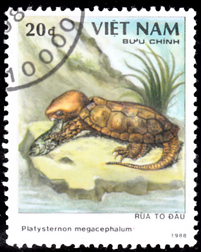 In der Serie aus Vietnam ist eine Marke (MiNr 2039) mit einer Großkopfschildkröte (Platysternon megacephalum) erschienen.