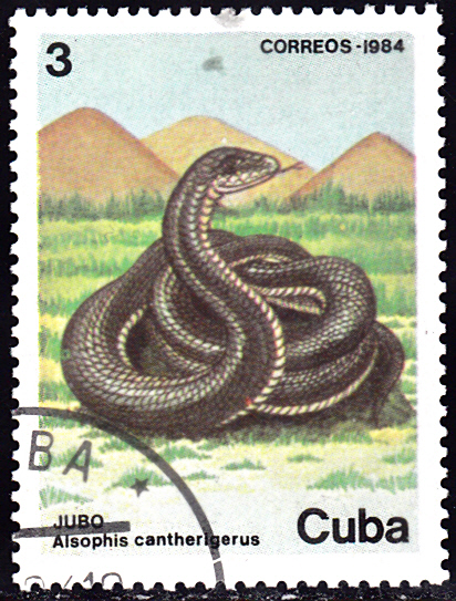 Es folgt eine weitere Marke aus Kuba (MiNr 2888) mit einer Kuba-Peitschennatter (Alsophis cantherigerus), die auch unter dem Namen Kuba-Schlanknatter bekannt ist. Es gibt vier Unterarten.