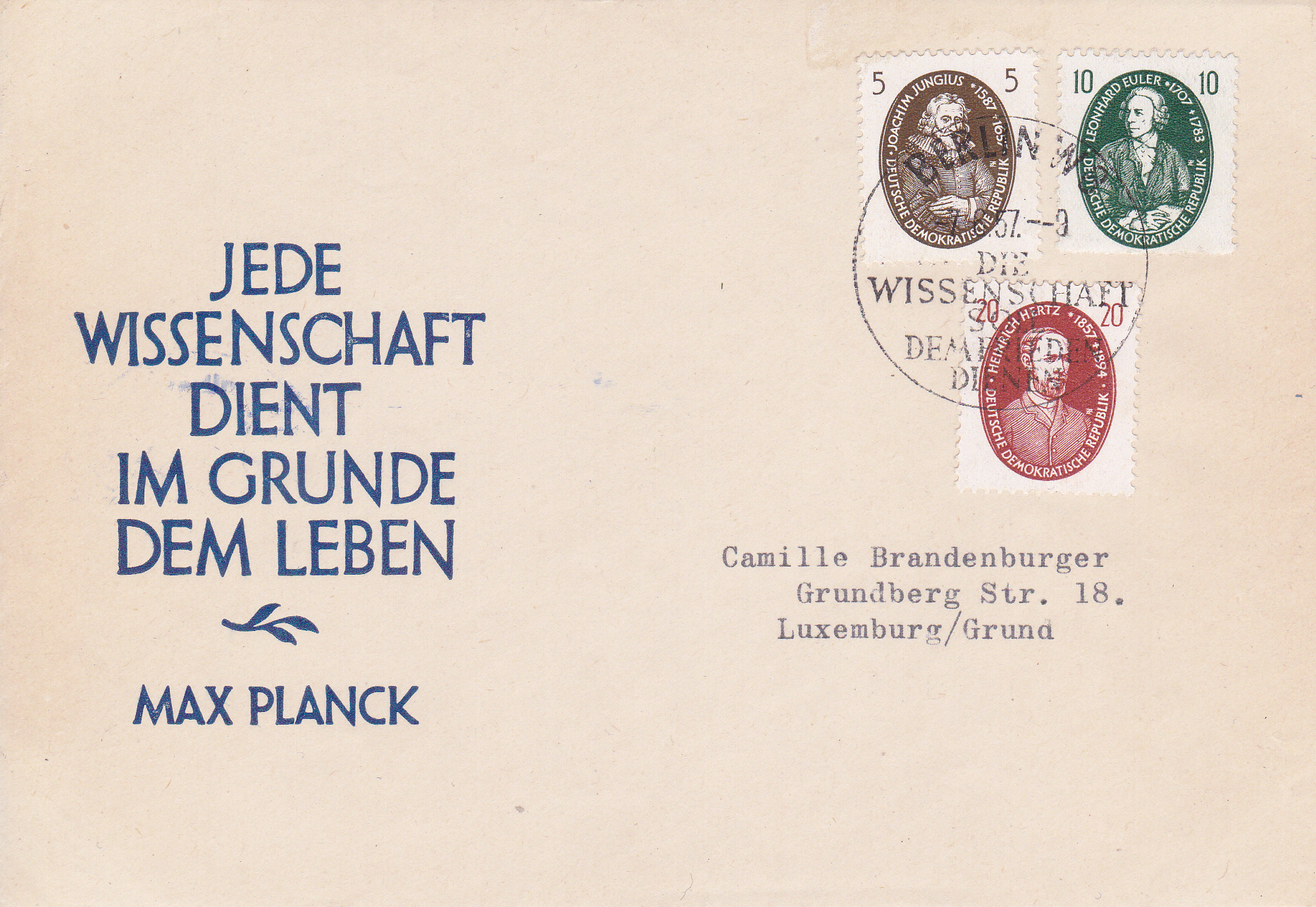 In der Serie "Berühmte Naturwissenschaftler" aus der DDR erschien dieser Marke (MiNr 575) mit einem weiteren Porträt von Leonhard Euler.