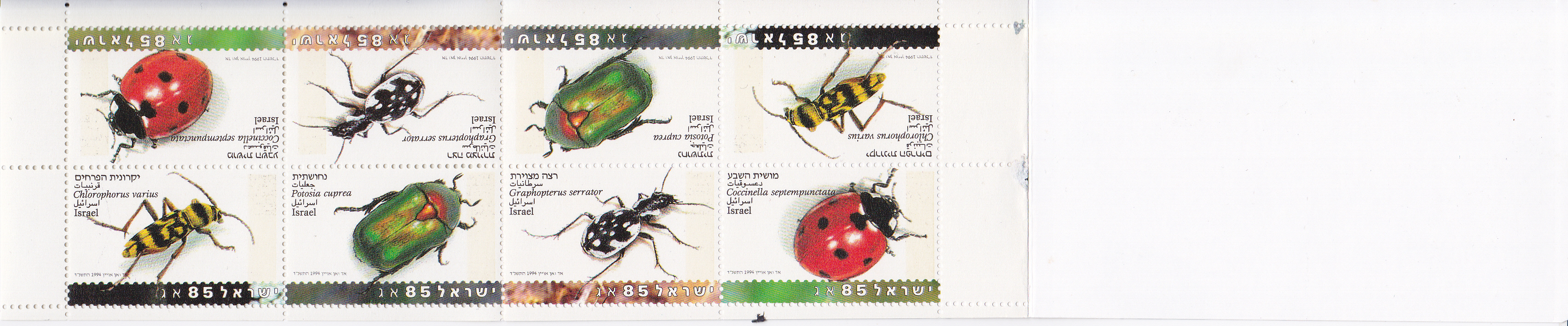 Die hier schon gezeigte Marke aus Israel ist auch zusammen mit drei weiteren Käfermotivmarken jeweils zweifach in einem Markenheftchen erschienen.