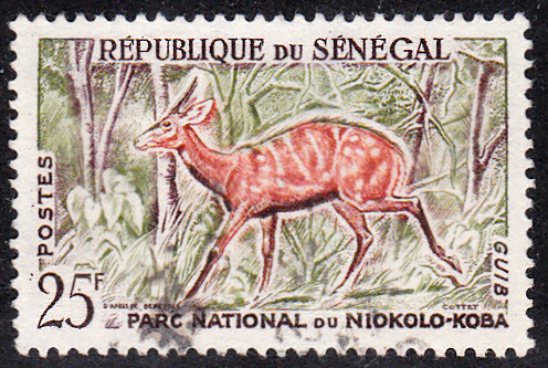 Auf dieser Marke aus dem Senegal (MiNr 237) wird eine Senegal-Schirrantilope (Tragelaphus scriptus) gezeigt.