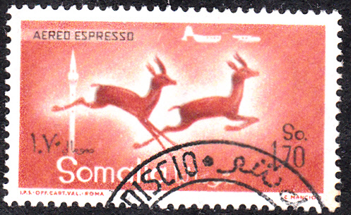 Auf dieser Marke aus Äthiopien (MiNr 64) wird eine Giraffengazelle (Lithocranius walleri) abgebildet.