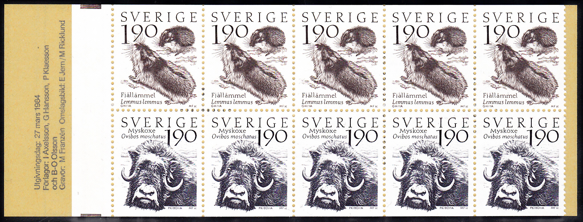 Auf dieser Marke aus Schweden (MiNr 1272) sind zwei Berglemminge zu sehen.