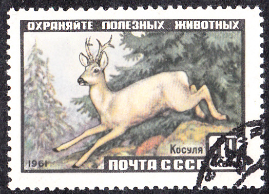 Auf dieser Marke aus der Sowjetunion (MiNr 2450) wird ein Sibirischer Rehbock (Capreolus pygargus) gezeigt.