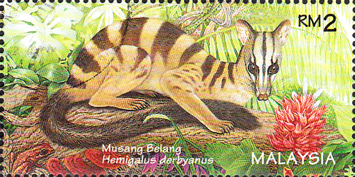 Diese Marke aus Malaysia (MiNr 624) zeigt einen Bänderroller (Hemigalus derbyanus).