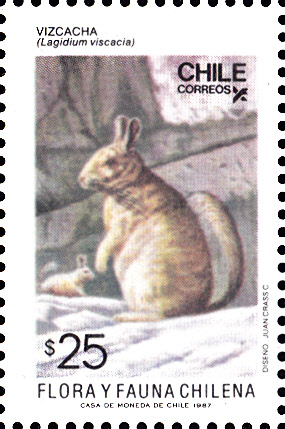 Hier auf dieser Marke aus Chile (MiNr 1203) wird eine Cuvier-Hasenmaus (Lagidium viscalia) gezeigt. Die Cuvier-Hasenmaus oder Eigentliches Bergviscacha ist im äußersten Süden Perus, dem Westen und Süden Boliviens, dem nördlichen und mittleren Chile und dem westlichen Argentinien verbreitet.