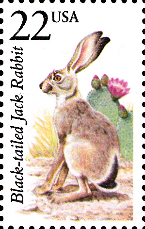 In einer Serie "Nordamerikanische Fauna" ist in den USA auch eine Marke (MiNr 1902) mit einem Eselhase (Lepus californicus) erschienen.