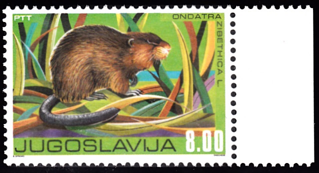 In einer Serie "Einheimische Tiere in Feuchtgebieten" ist in Jugoslawien diese Marke (MiNr 1645) mit einer Bisamratte (Ondatra zibethica) erschienen.