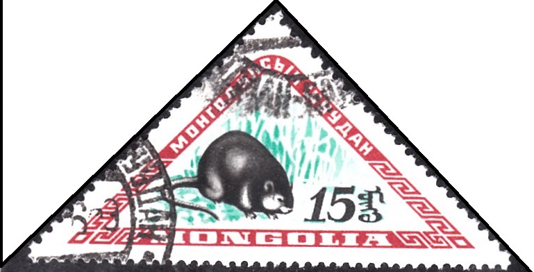 Aus der Mongolei kommt diese Marke (MiNr 172) mit einer Bisamratte (Ondatra zibethica).
