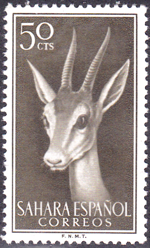 In Spanisch-Sahara sind zwei bildgleiche Marken mit der Abbildung eines Kopfes einer Dorkasgazelle (Gazella dorcas) erschienen.