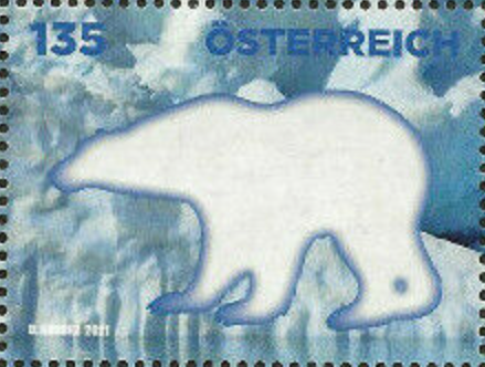 Motiv: Ein Eisbär auf einer Eisscholle neben einem Segelschiff.