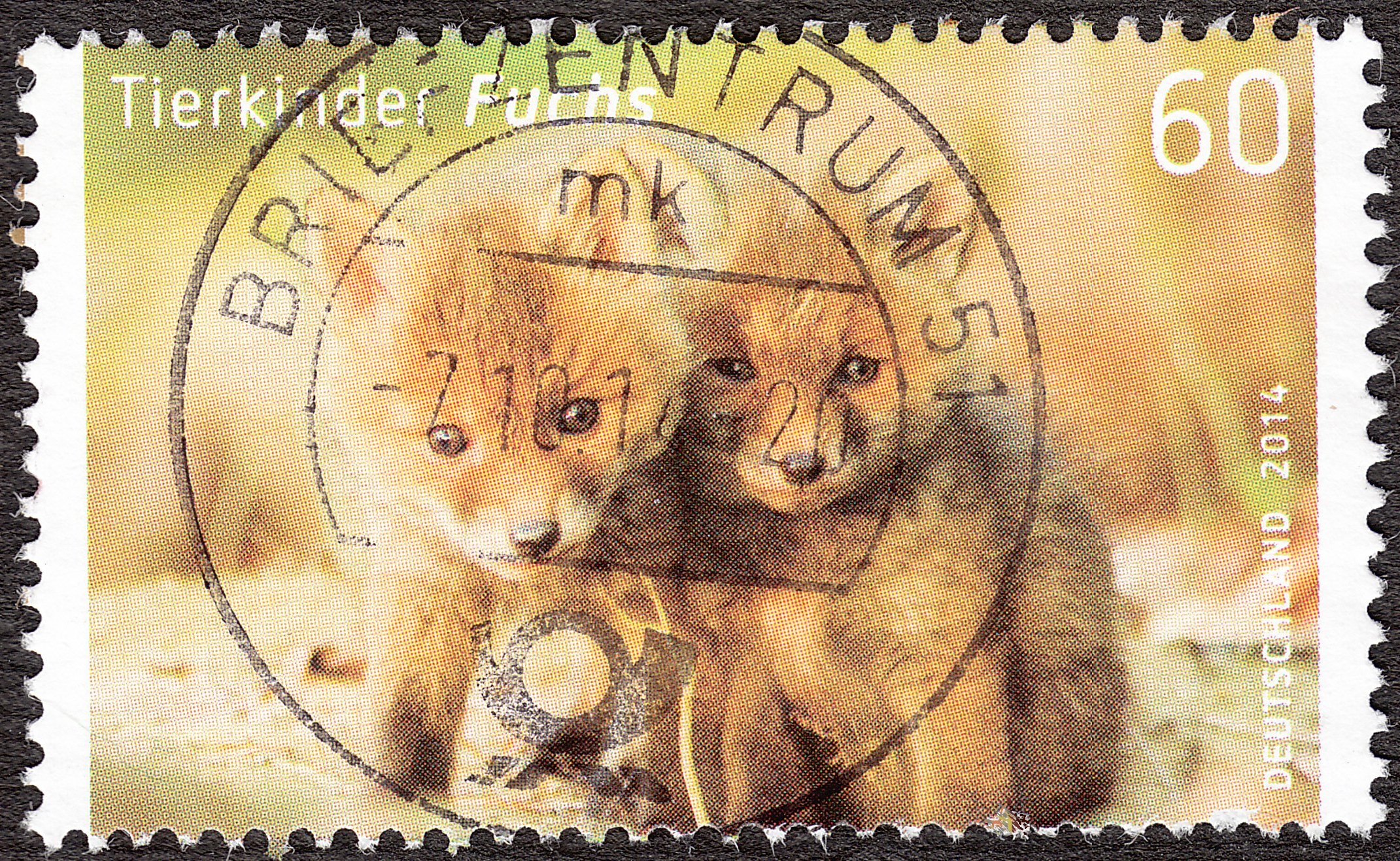Hier die in diesem Thread bereits gezeigten Jungfüchse, diesmal als naßklebende Einzelmarke sauber gestempelt: