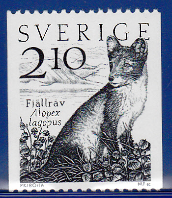 Diese schwedische Marke (MiNr 1246) zeigt einen Polarfuchs (Alopex lagopus).