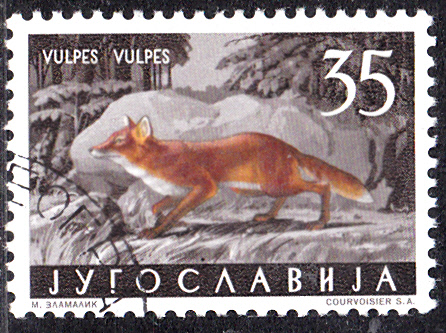 1960 ist diese Marke in Jugoslawien (MiNr 921) mit einem Rotfuchs (Vulpes vulpes) im Markenbild erschienen.