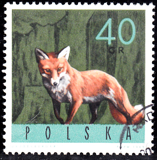 Auf dieser Marke aus einer polnischen Serie "Tiere des Waldes" (MiNr 1637) ist ein Fuchs (Vulpes vulpes) zu sehen.