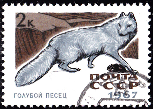 Hier kommt zur Abwechslung wieder mal ein Polarfuchs (Vulpes lagopus, Syn.: Alopex Iagopus) auf einer Marke aus der Sowjetunion (MiNr 3386).