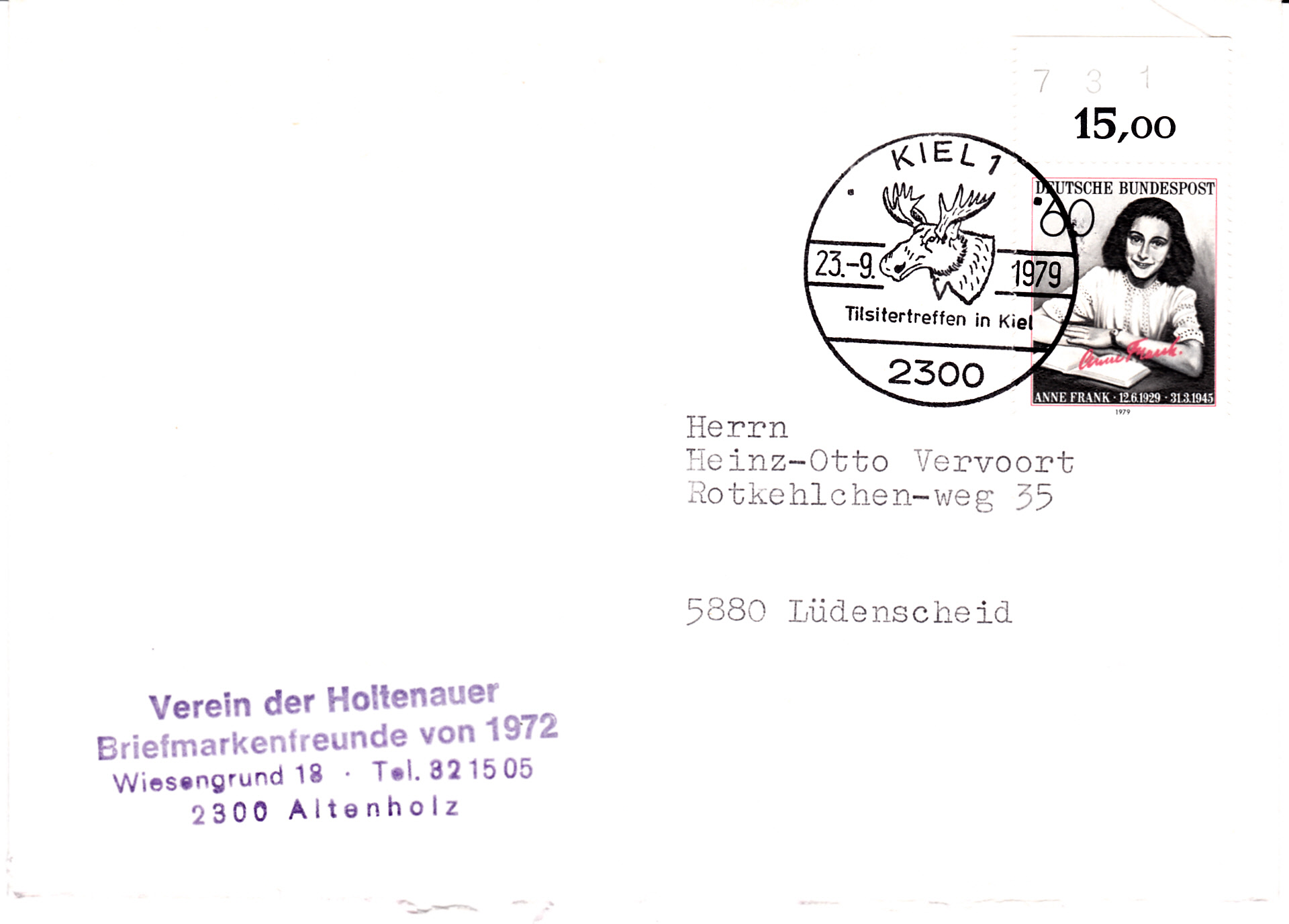 Dieser Sonderstempel aus Kiel vom 23.9.1979 zeigt den Kopf eines Elches.