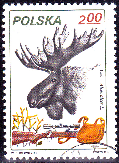 Aus Polen kommt diese Marke (MiNr 2747) mit einem Elchkopf (Alces alces).