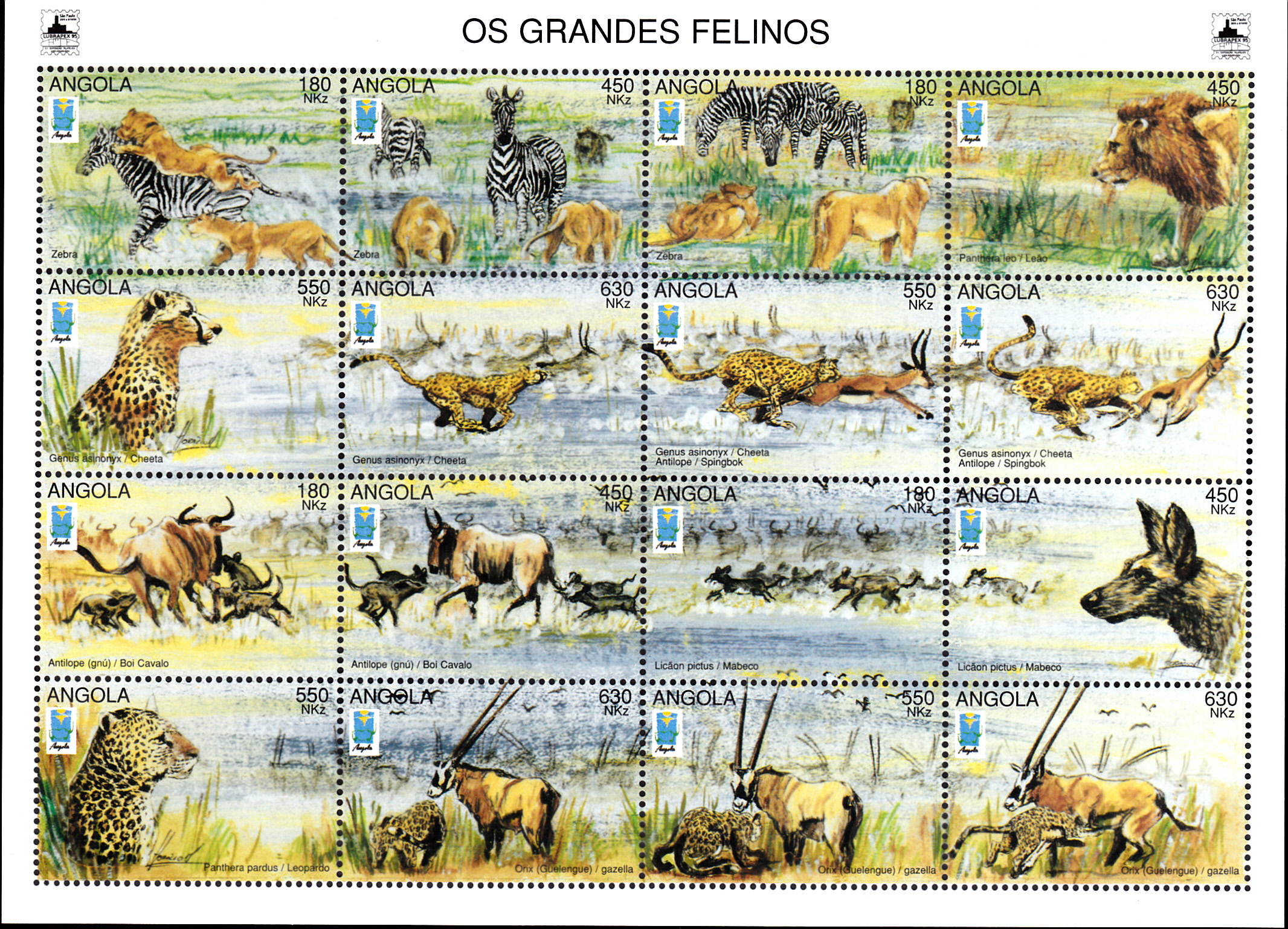 In Angola sind vier Marken erschienen, die das Jagdverhalten der Löwen zeigt. Hier auf dieser Marke (MiNr 1007) wird ein Löwe gezeigt. Er ist auf einem Streifzug und der Suche nach Beute.
