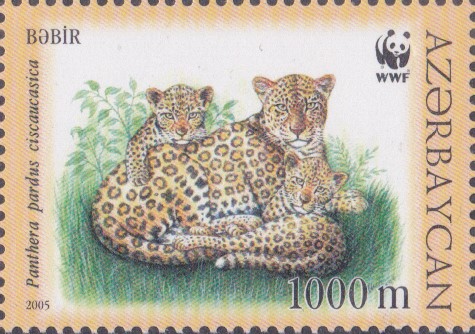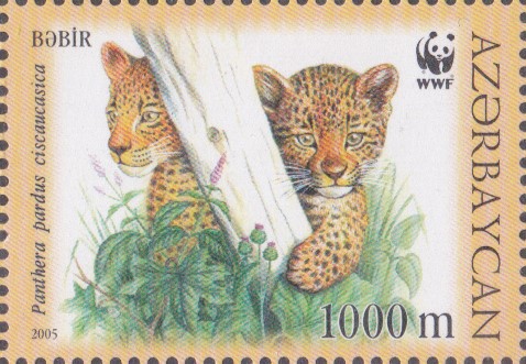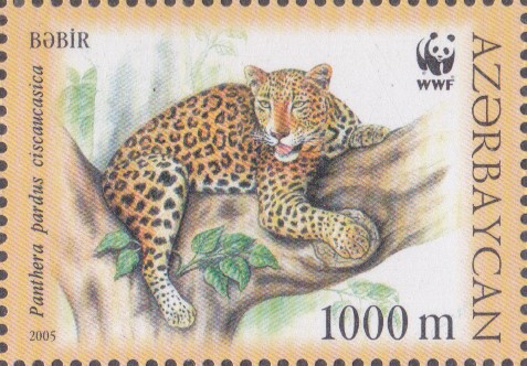 In Aserbaidschan erschien diese Marke (MiNr 592) mit einem Persischen Leopard (Panthera pardus saxicolor) auf einer Astgabel.