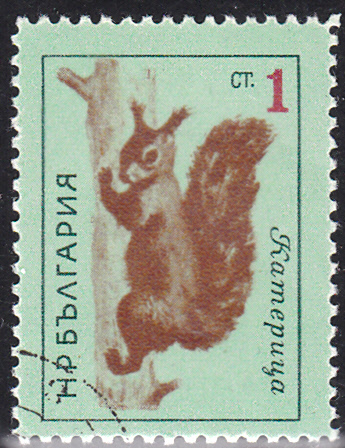 Auf dieser Marke aus der Sowjetunion (MiNr 2243) wird ein Sibirisches Eichhörnchen (Sciurus vulgaris varius) gezeigt