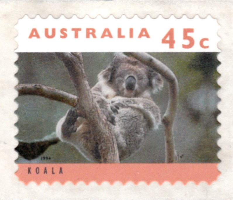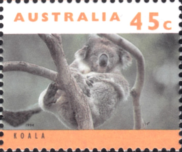 Der Koala (Phascolarctos cinereus) auf dieser Marke (MiNr 1407 a) ist am Schlafen. Sie schlafen bis zu 20 Stunden am Tag.