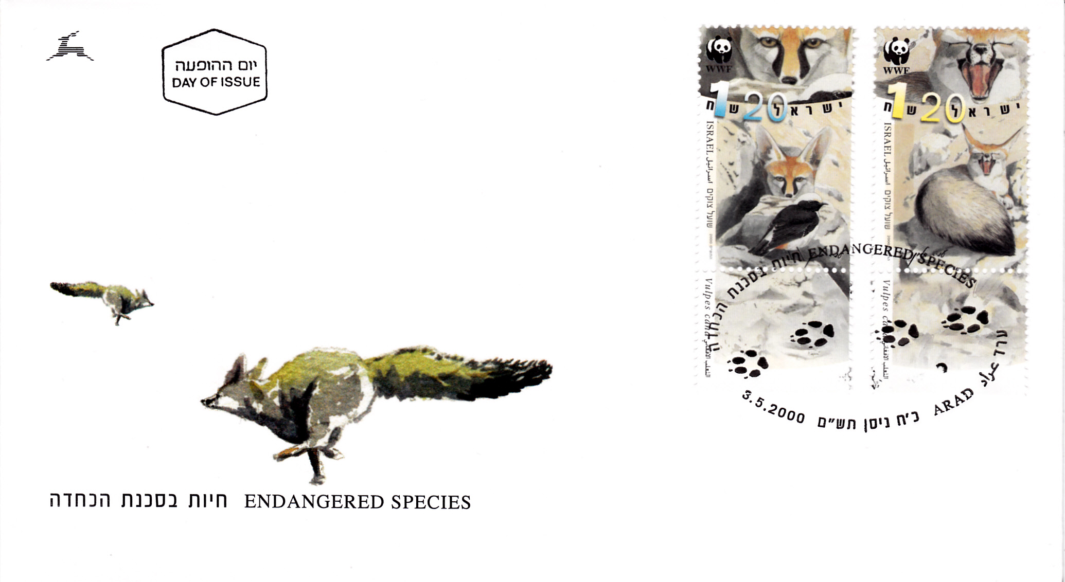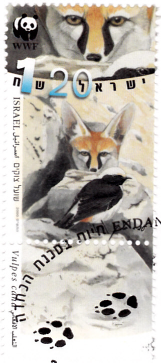 In einer Serie "Weltweiter Naturschutz" aus Israel ist diese Marke (MiNr 1555) mit einem Afghanfuchs (Vulpes cana) auf einem Felden erschienen.