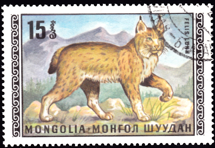 Auch auf dieser Marke aus der Mongolei (MiNr 580) wird ein Eurasischer Luchs (Lynx lynx) gezeigt.