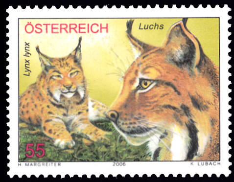 Aus Österreich kommt auch eine Marke (MiNr 2611) zum Thema Eurasischer Luchs (Lynx lynx).