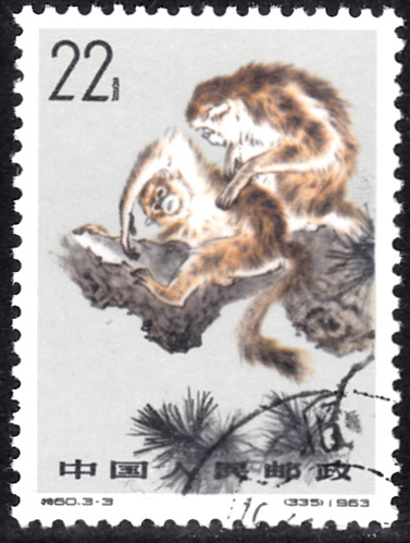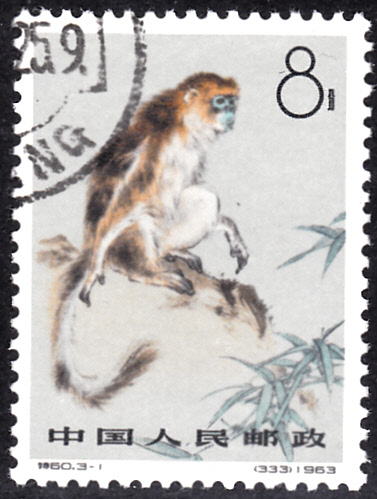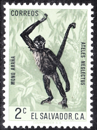 Hier zeige ich eine Marke aus El Salvador (MiNr 857) mit einem Geoffroy-Klammeraffen (Ateles geoffroyi).