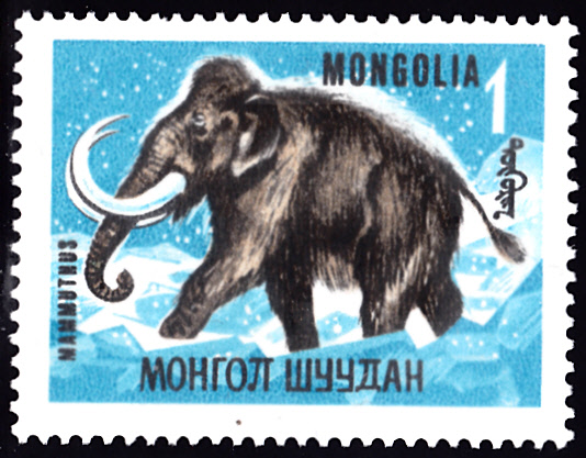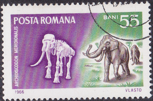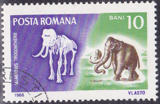 Auf dieser Marke aus Rumänien wird ein Steppenmammut (Mammuthus trogontherii) gezeigt.