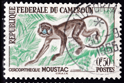 In Kamerun ist eine Blaumaulmeerkatze (Cercopithecus cephus) auf dieser Marke (MiNr 355) zu sehen.