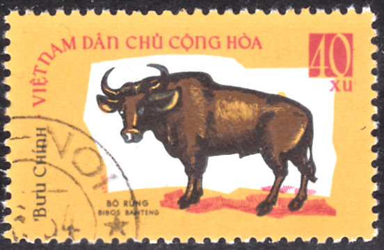 Hier eine Marke aus Vietnam (MiNr 1982) mit einem Banteng (Bos javanicus).